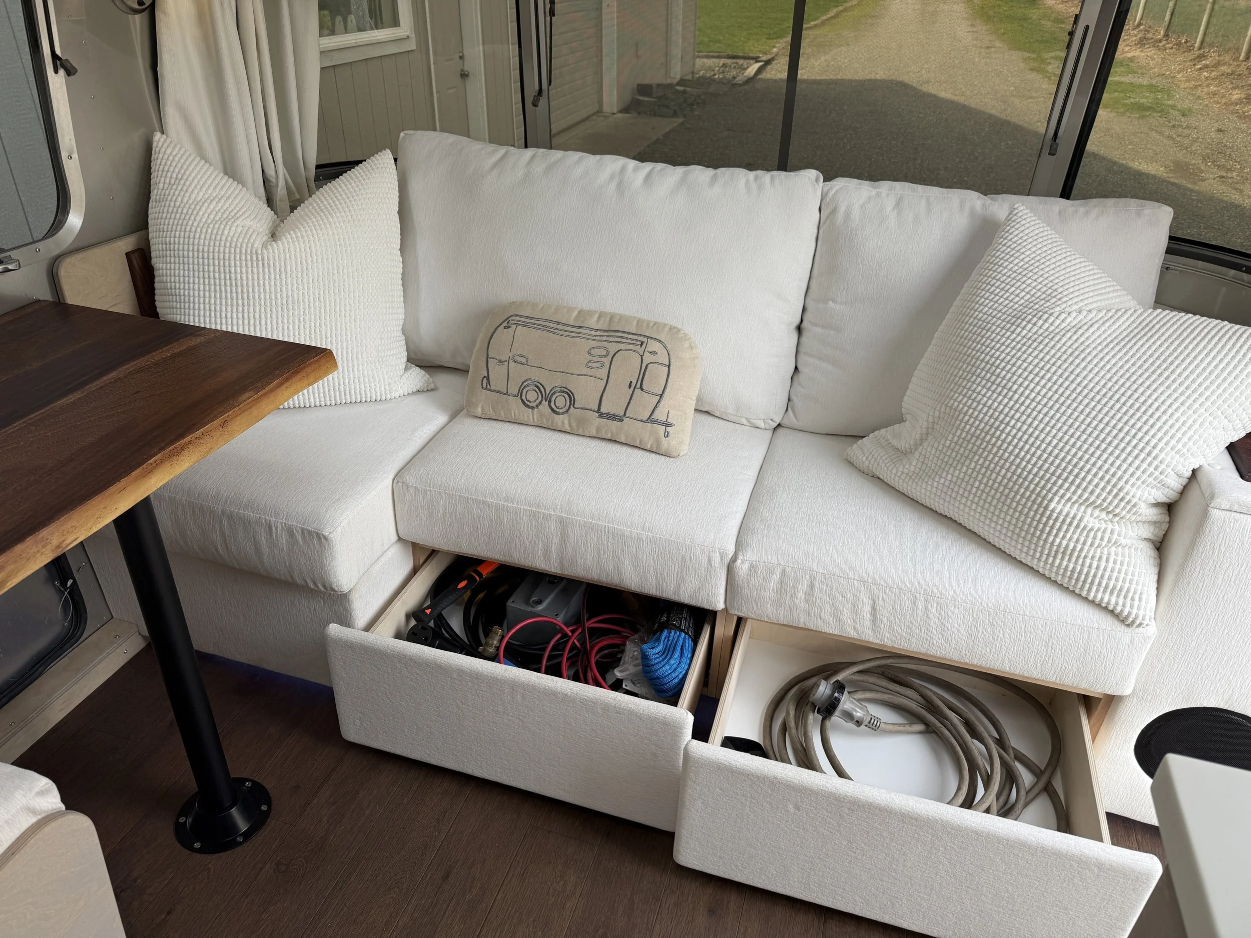 This 26-foot Airstream has been reimagined with the warmth and timeless style of Pottery Barn, blending classic design with modern functionality. Every detail was chosen to create a space that feels both elevated and inviting — a true home on wheels.