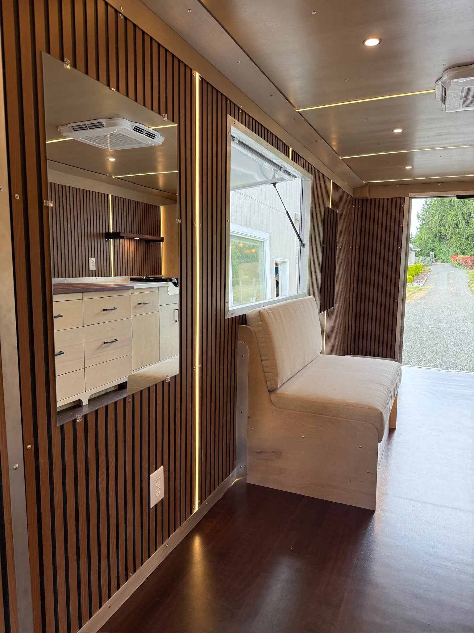 We transformed a retired FedEx box truck into a high-end, mobile barbershop for a Seattle-based client. This project wasn't just a remodel; it was a full-scale conversion that reimagined a functional vehicle as a luxury grooming studio. Our work on this project showcases our ability to deliver bespoke, client-focused solutions that turn everyday vehicles into purpose-built business assets.